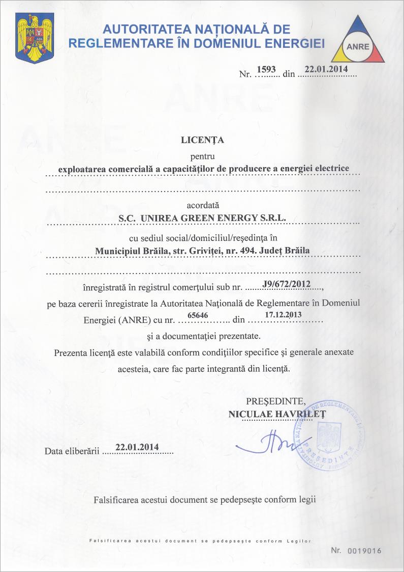 The company was born in 2012 as a result of the decision to invest in electricity produced from renewable sources. As a result, we have been able to develop and build the Photovoltaic Power Plant CEF ULMU in Braila County: